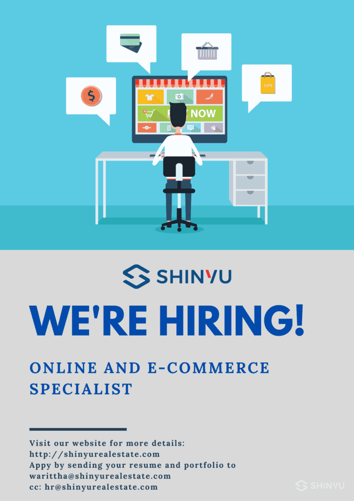 และจากความสำเร็จในตลาดอสังหาริมทรัพย์ ในวันนี้เรากำลังขยายธุรกิจของเราสู่การทำธุรกิจ E-commerce 🛒 และกำลังมองหาคนรุ่นใหม่ไฟแรง มีความฝันและจิตวิญญาณในการทำงานที่จะมาร่วมทีม Marketing และเติบโตไปพร้อมกันกับเรา 💶💰